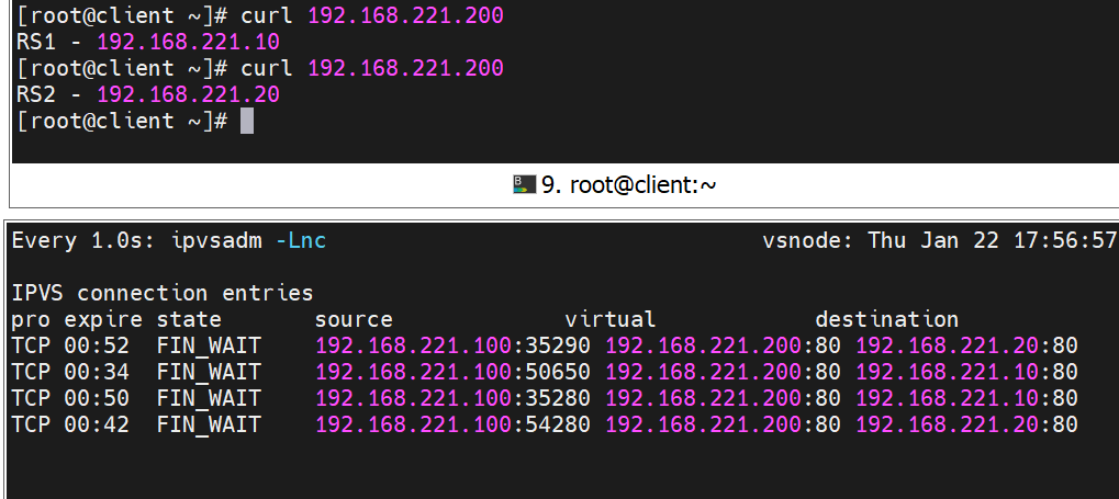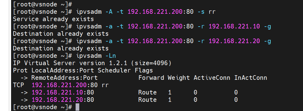 [root@vsnode ~]# ipvsadm -a -t 192.168.221.200:80 -r 192.168.221.10 -g