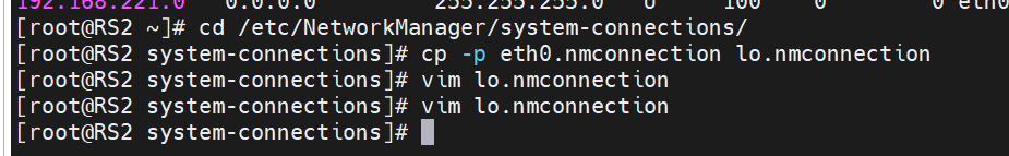[root@RS2 system-connections]# cp -p eth0.nmconnection lo.nmconnection