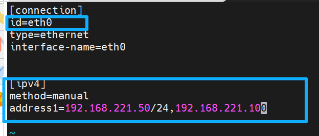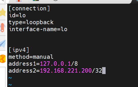 address2=192.168.221.200/32 #添加虚拟 IP(VIP)192.168.221.200/32