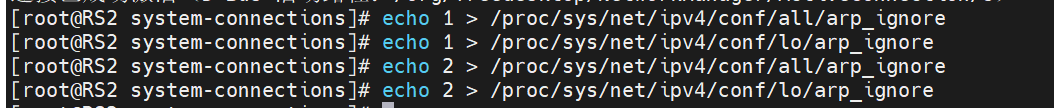 [root@RS2 system-connections]# echo 1 > /proc/sys/net/ipv4/conf/all/arp_ignore