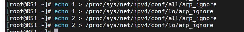 [root@RS1 ~]# echo 1 > /proc/sys/net/ipv4/conf/all/arp_ignore