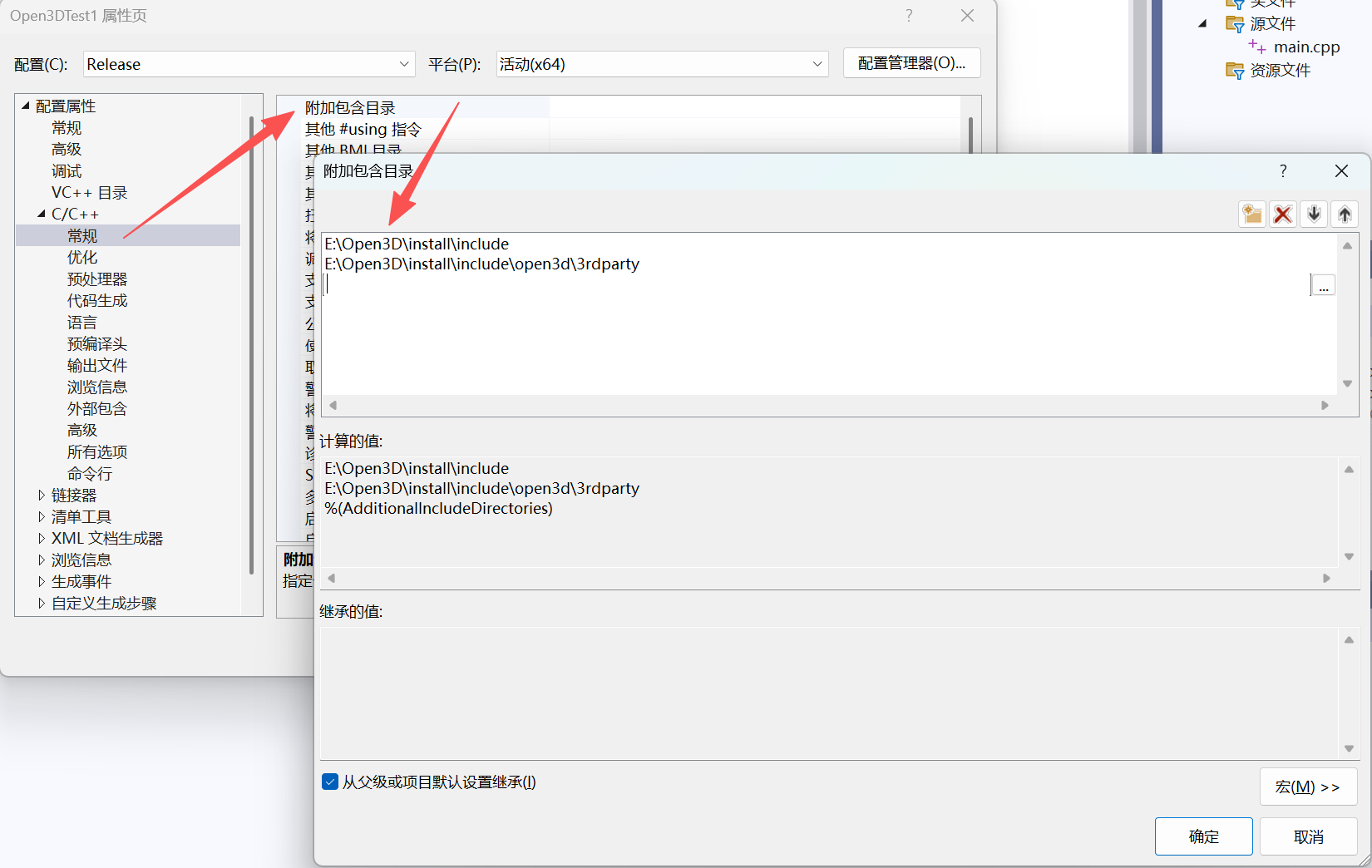 include目录,如E:\Open3D\install\include E:\Open3D\install\include\open3d\3rdparty -