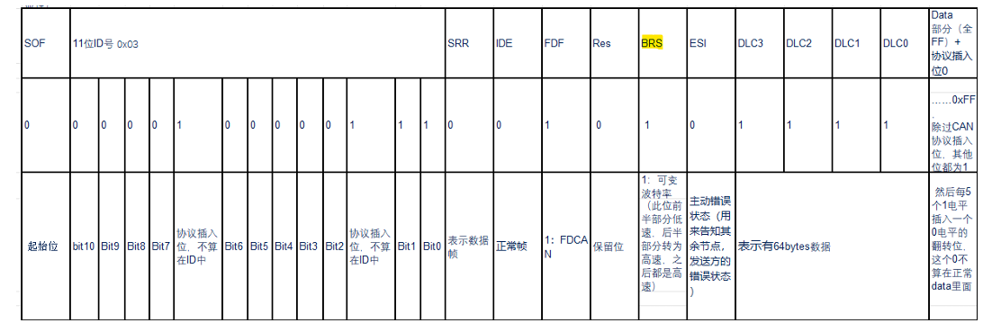 关键字:FDCAN, BRS bit