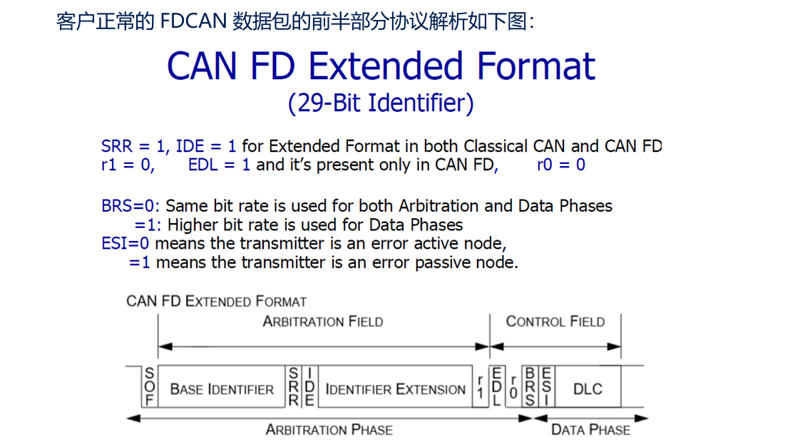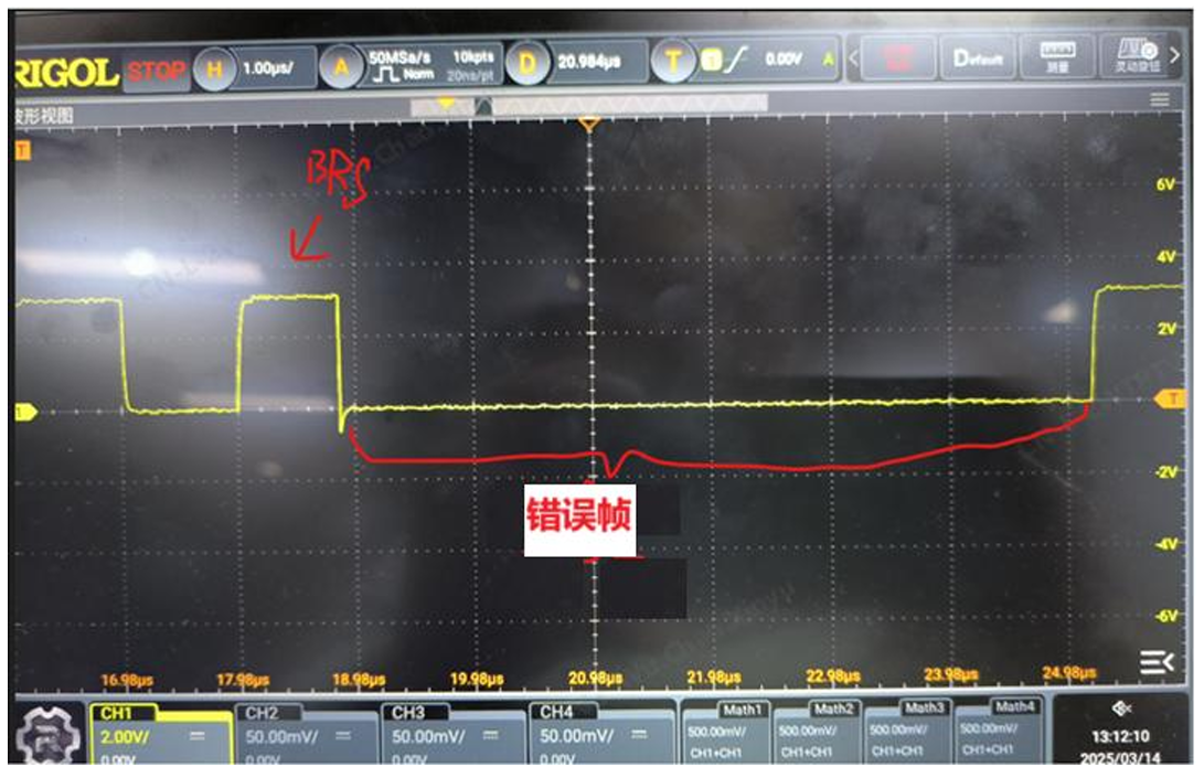 客户产品在FDCAN发出BRS位的后半部分出现了问题,BRS之后的DLC位信息没有出