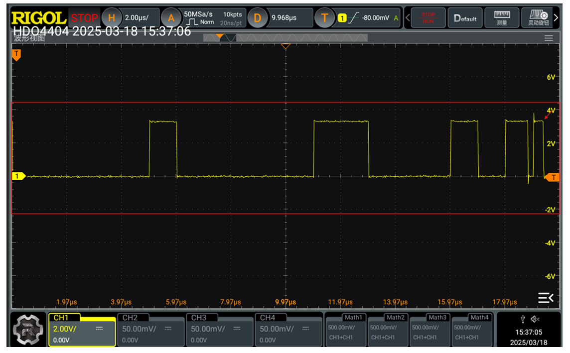 波特率降下来后正常通讯的数据包的波形: