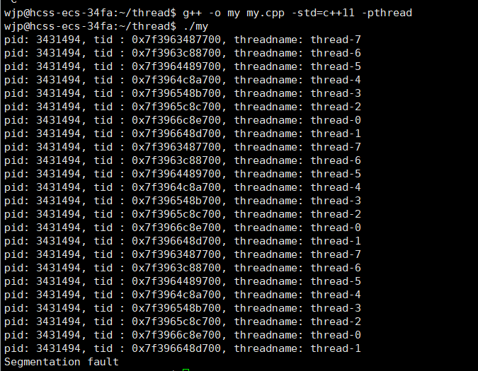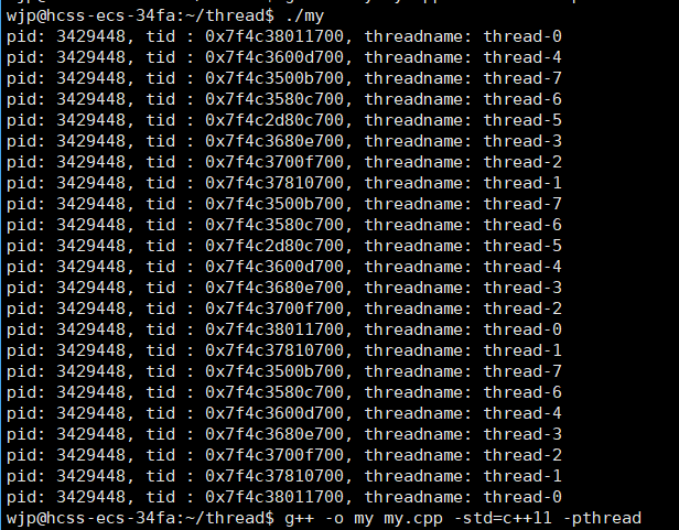 cout<<"pid: "<<getpid()<<", tid : "<<Tohex(pthread_self())<<", threadname: "<<td->threadname<<endl;