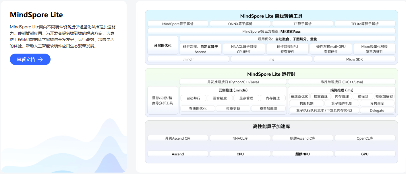 MindSpore Lite 是华为推出的轻量级AI推理框架,而 MindSpore Lite Kit是HarmonyOS NEXT内置的轻量化AI引擎,它们的概念是有区别的,
