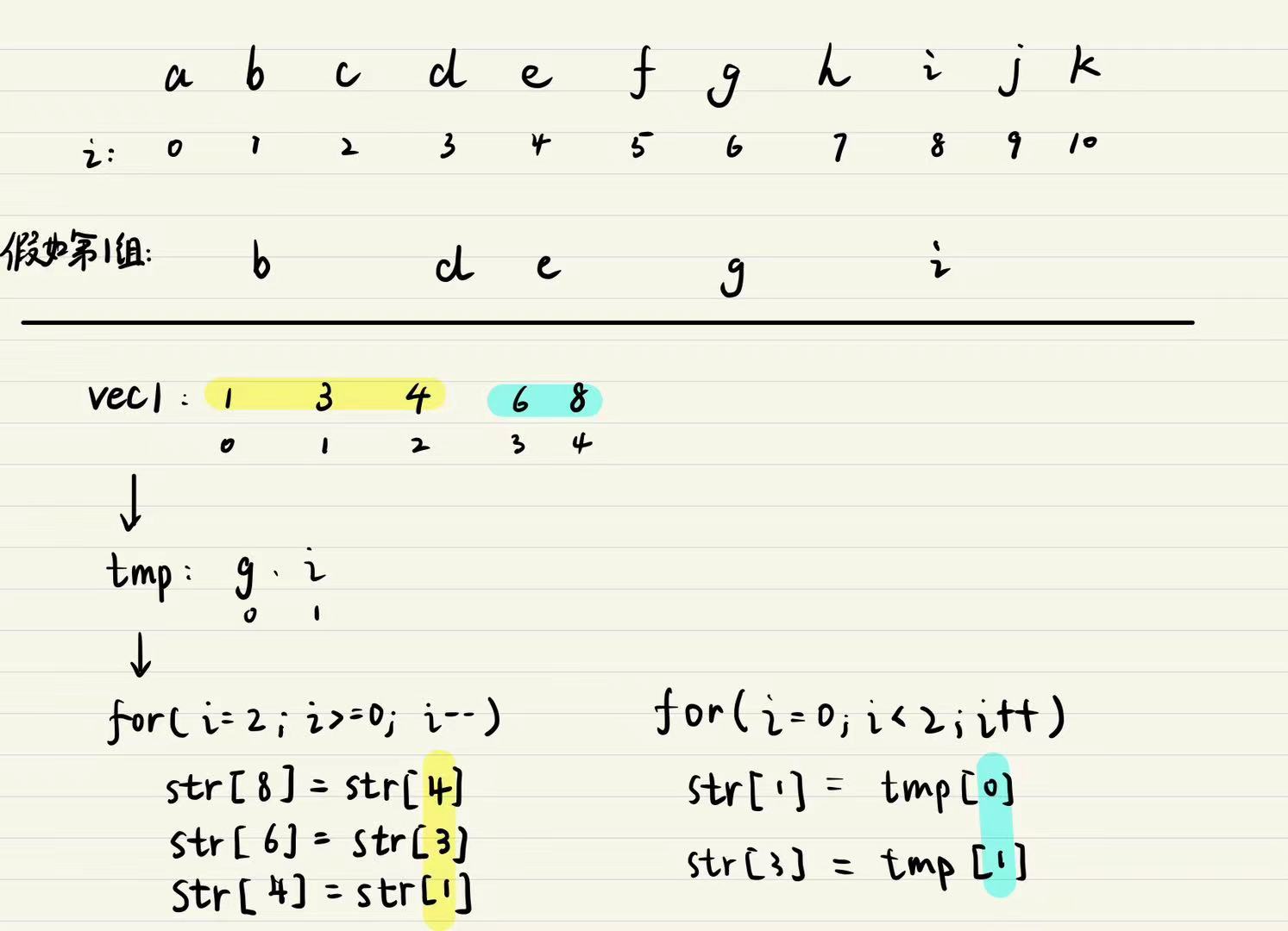 tmp.push_back(str[ vec[i] ]); // 应存字符