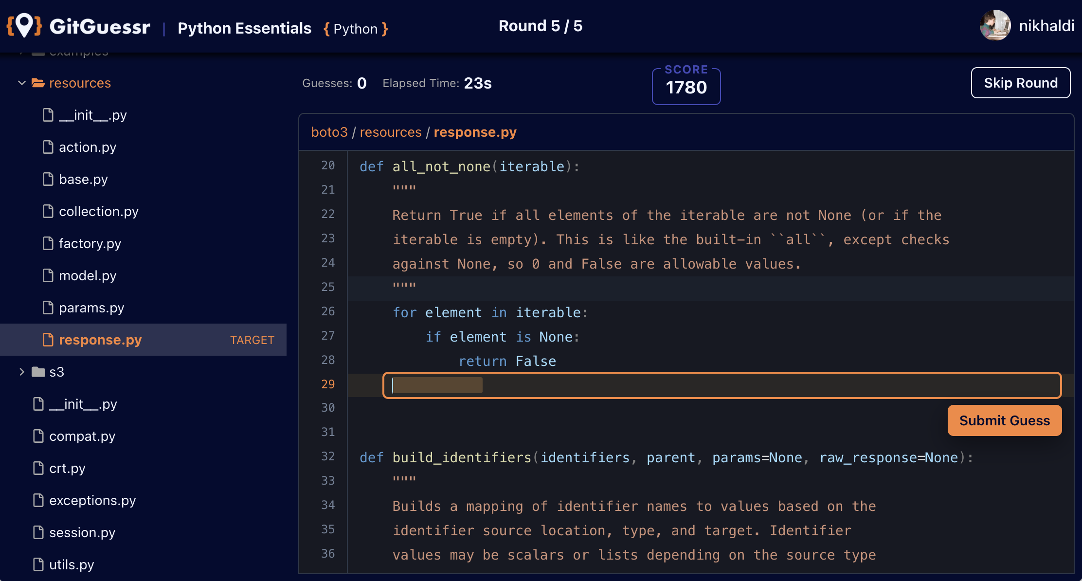 介绍:GitGuessr是一款独特的新游戏,你会被随机投放到一个真实的GitHub代码库中的某个地点,那里有一些代码行被隐藏起来。你的目标是理解这个代码库,并尽快补全缺失的代码。你可以在Python、TypeScript和JavaScript(这些是GitHub上最受欢迎的三种语言)中进行平衡的游戏体验,或者从你喜欢的语言或代码库中创建自己的代码地图,与社区分享。