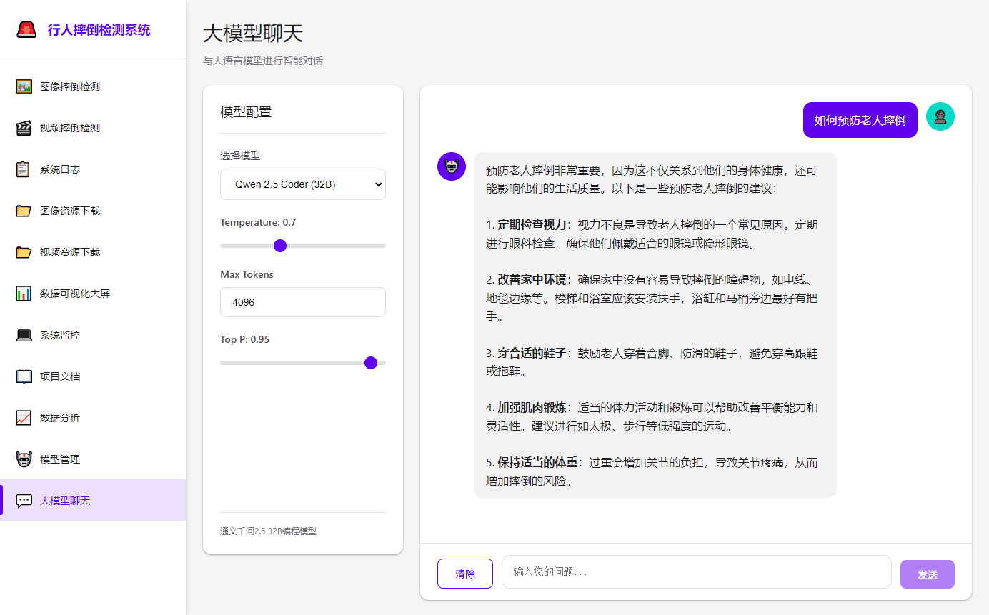 这个行人摔倒检测系统是一个完整的端到端解决方案,从前端界面到后端服务,从模型推理到数据可视化,每个环节都经过精心设计和实现。