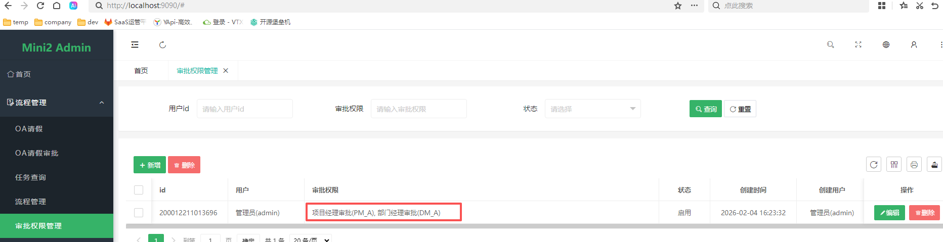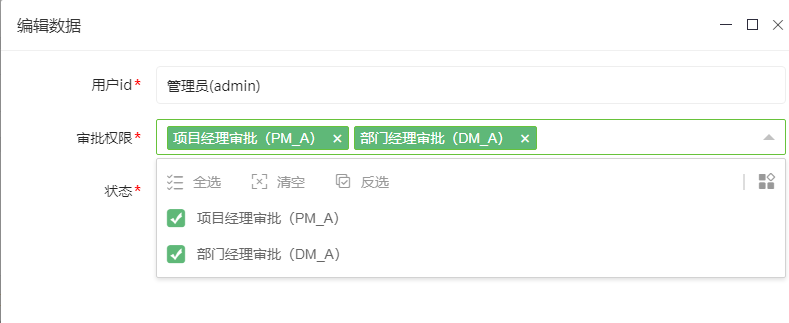 审批权限表可以配置你可以审批哪些流程任务。