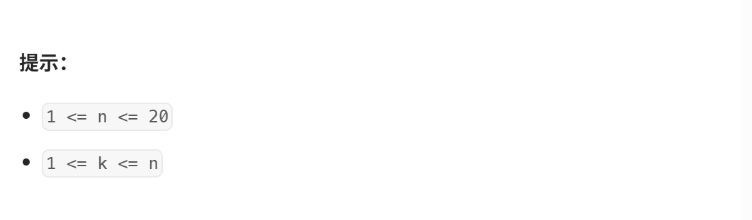 dfs(0, 1, n, k, new ArrayList<Integer>());