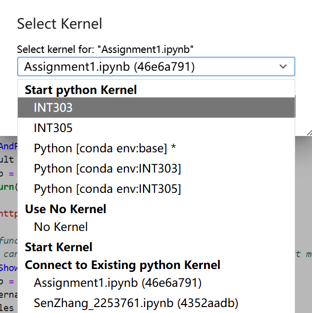 我们点开就可以看到我们刚刚注册的名为 INT303 的 kernel 在这里。