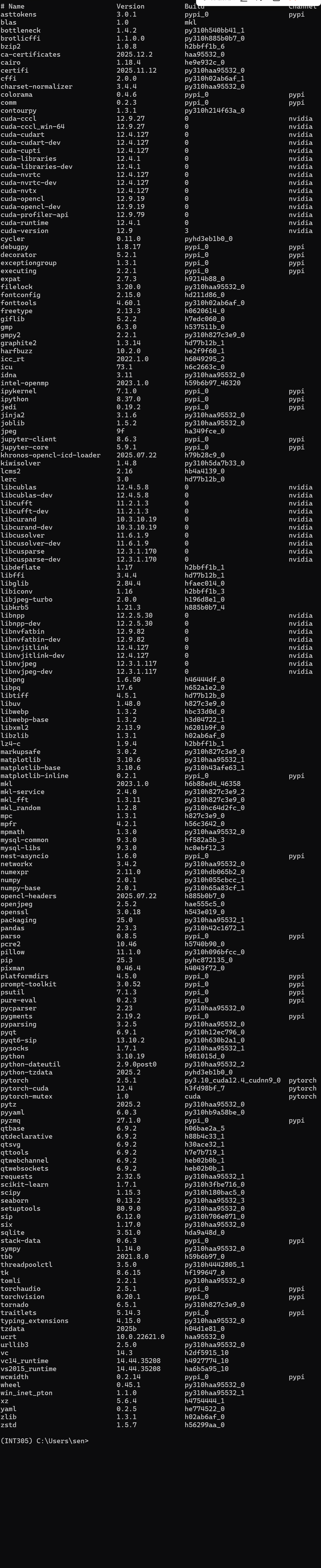 以我上学的情况为例,我大四的两门课可以使用相同的环境去解决,但是和之前大二课的环境稍微有些差异。我可以创建专门的环境去解决这两门课,然后安装对应的库,下图展示了我这个虚拟环境使用了哪些库。