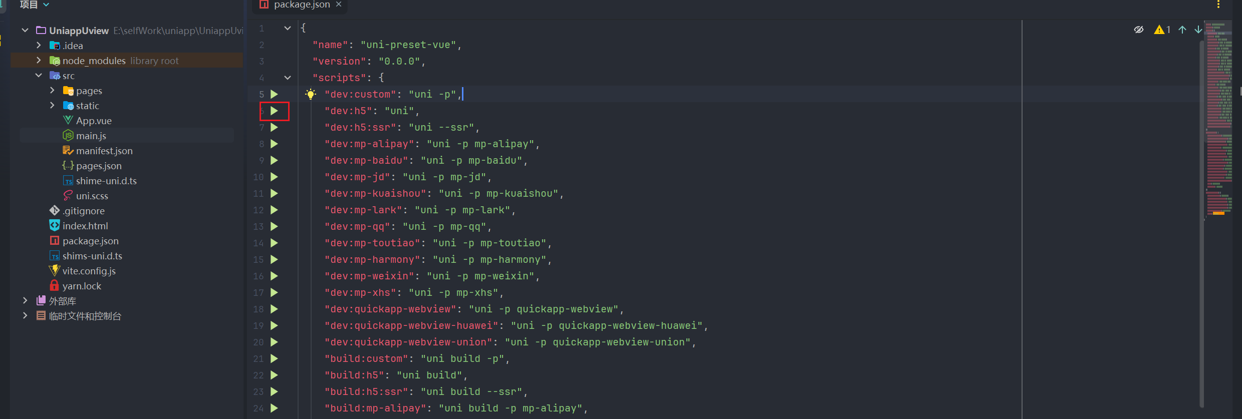 5.测试项目是否初始化成功,打开package.json,运行dev:h5命令,也可运行"yarn dev:h5"命令