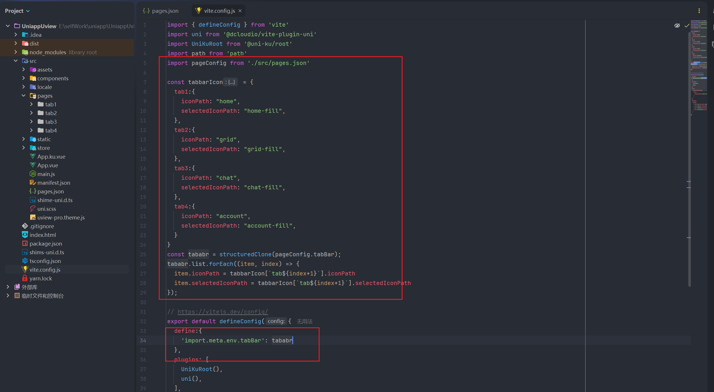 7.完善Page组件增加tabBar:修改vite.config.js,增加tabbar配置,由于在页面中无法获取到tabbar配置,所以由vite配置到import.meta.env。