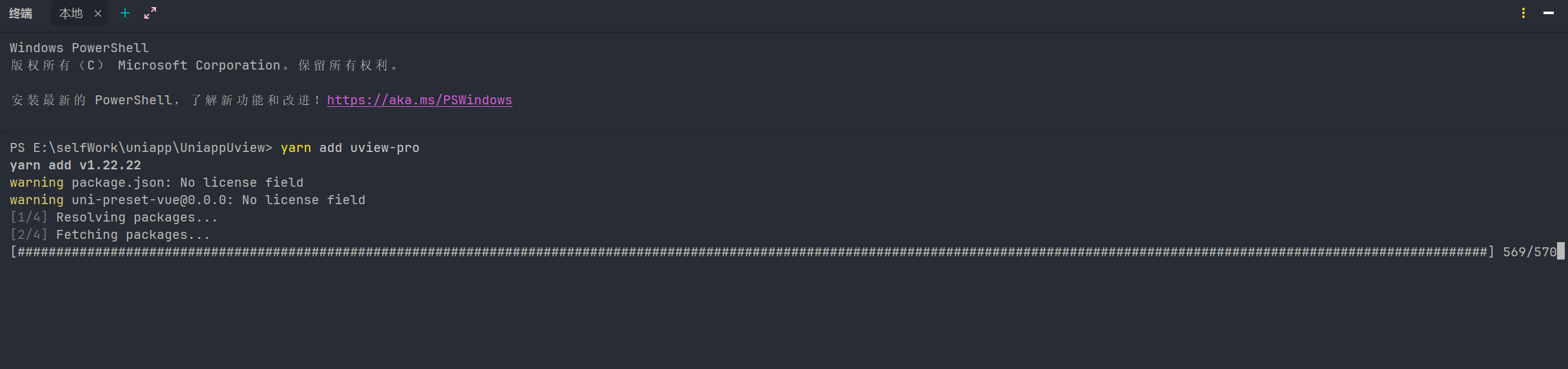 1.运行yarn add uview-pro命令安装uView Pro,官网:https://uviewpro.cn/