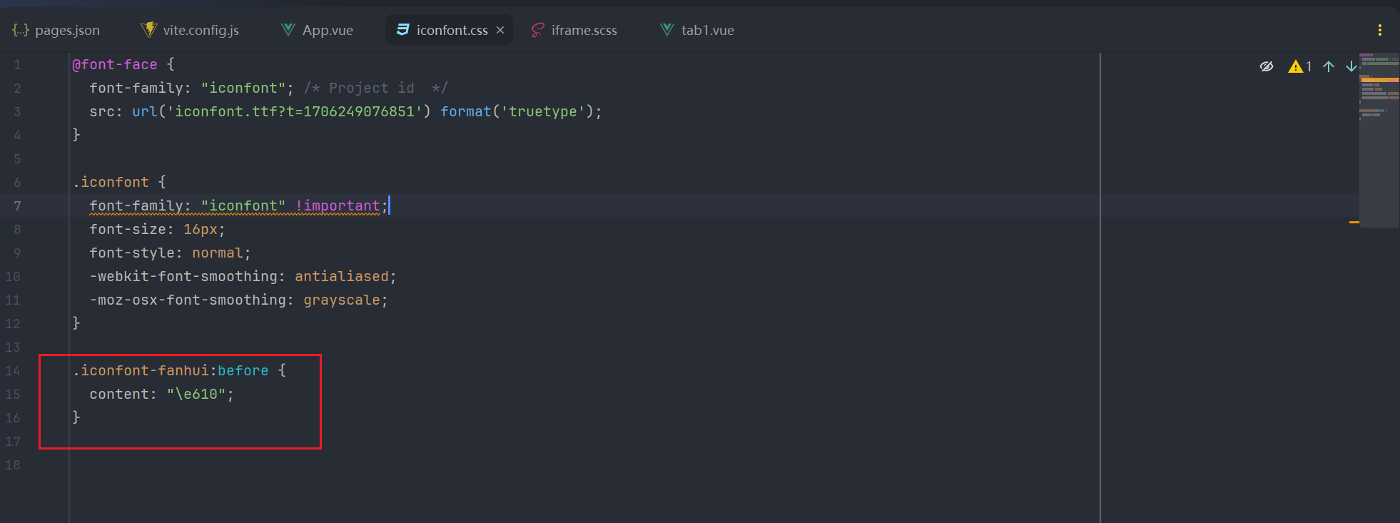 5.修改src>page>tab1>tab1.vue,使用自定义图图标