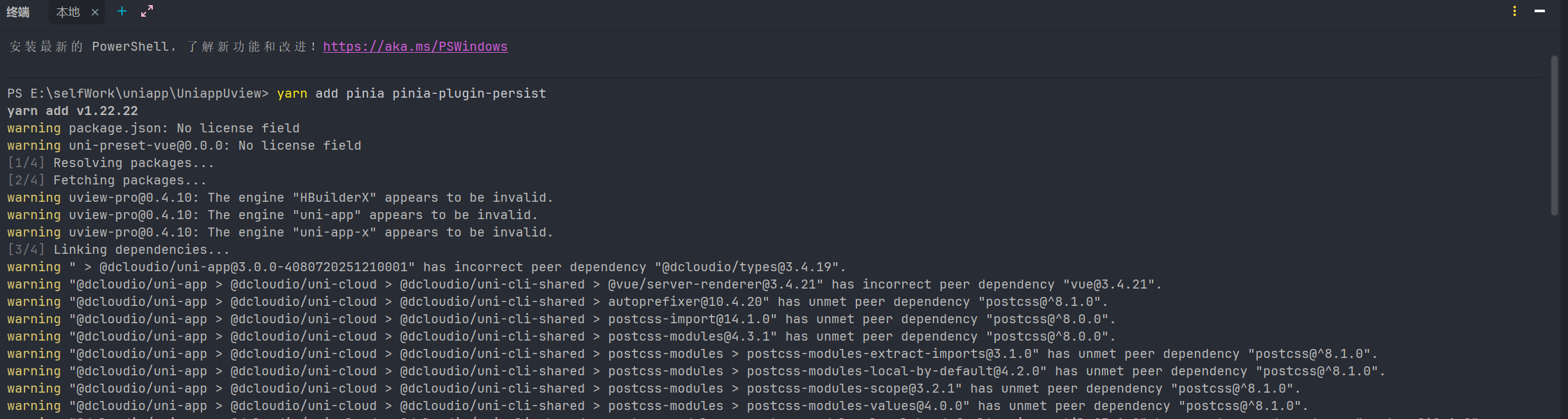 1.终端运行:yarn add pinia pinia-plugin-persist,安装pinia、pinia-plugin-persis
