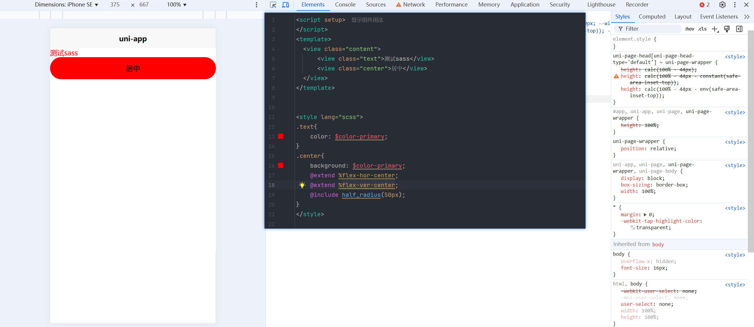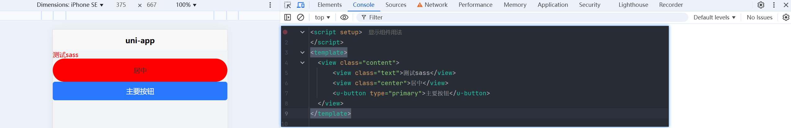 5.测试sass是否配置成功:修改src>pages>inde>index.vue,样式正常显示说明sass配置成功
