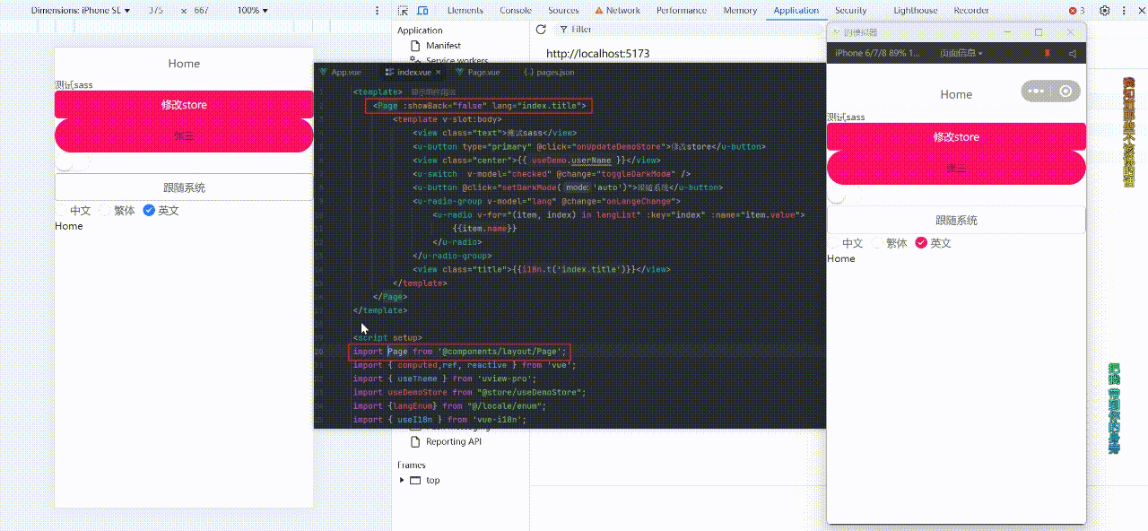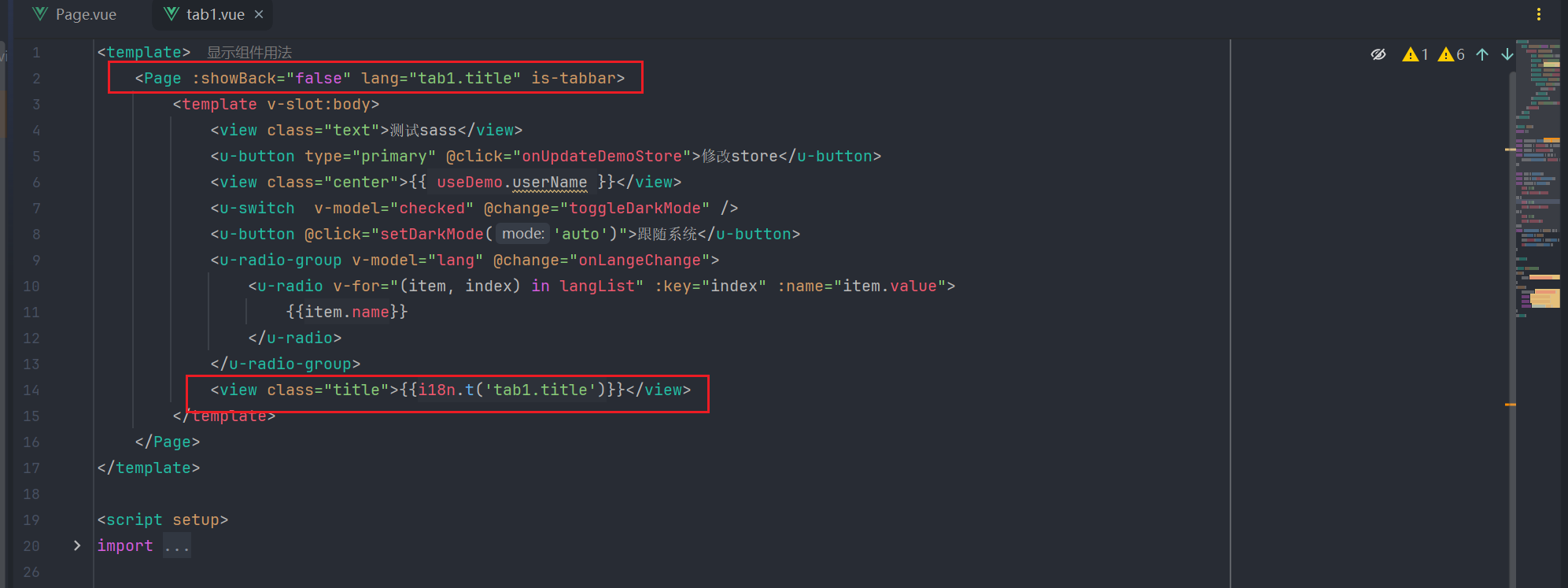5.修改src>pages>index>index.vue,使用Page组件,如下图所示无论h5还是微信小程序切换语言时页面title都会改变