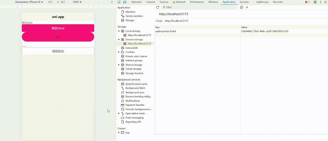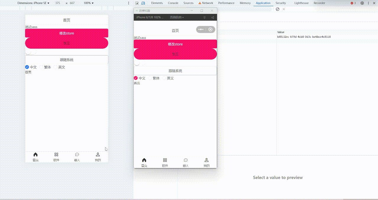 3.测试pinia是否配置成功:如下图点击修改store后,数据存入session storage说明pinia配置成功