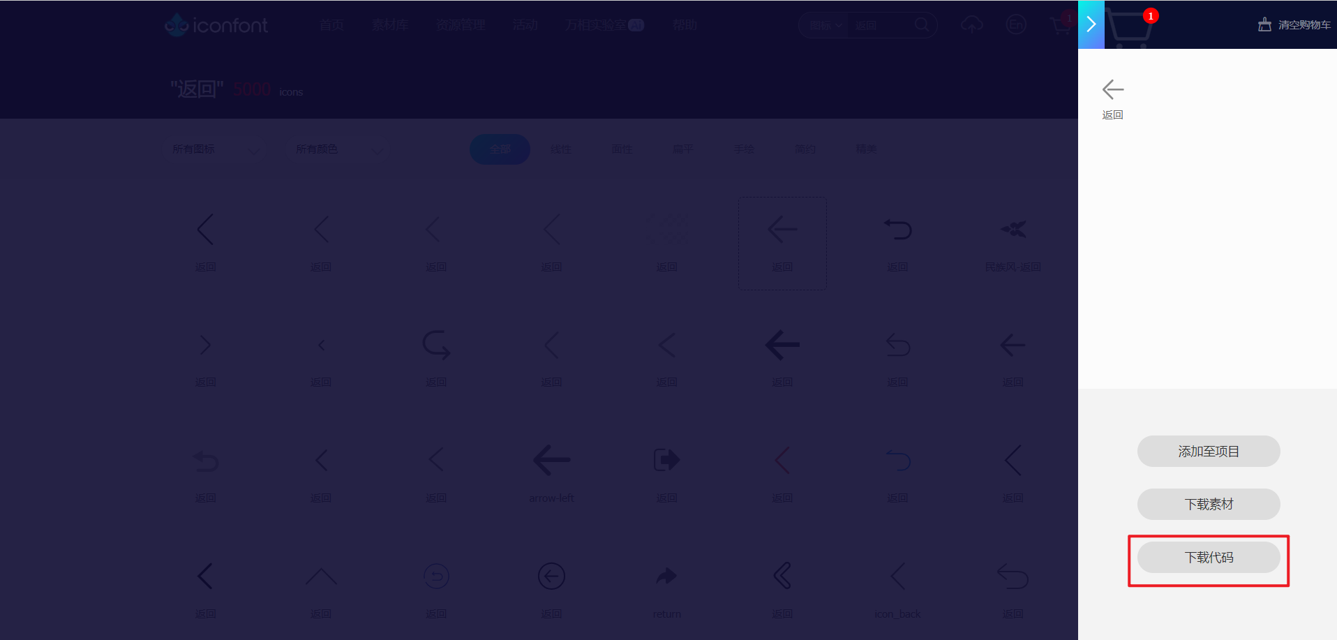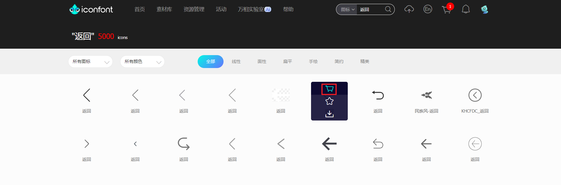 1.字体图标集成以阿里icon为例,访问:https://www.iconfont.cn/ 图标库,搜索返回,任选一个图标加入购物车