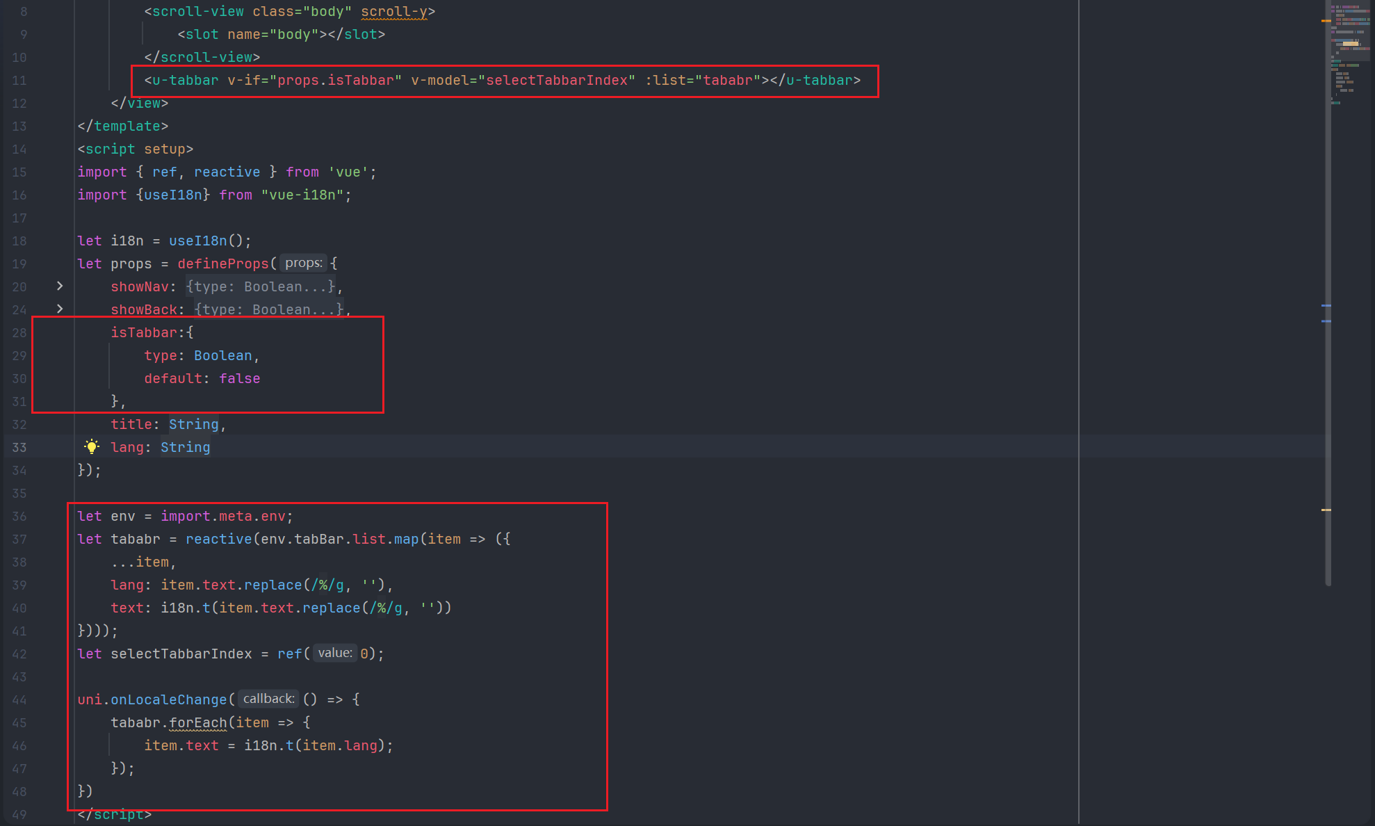 3.测试国际化是否配置成功:修改src>page>index>index.vue,html中别用 t , t, t,t不兼容小程序
