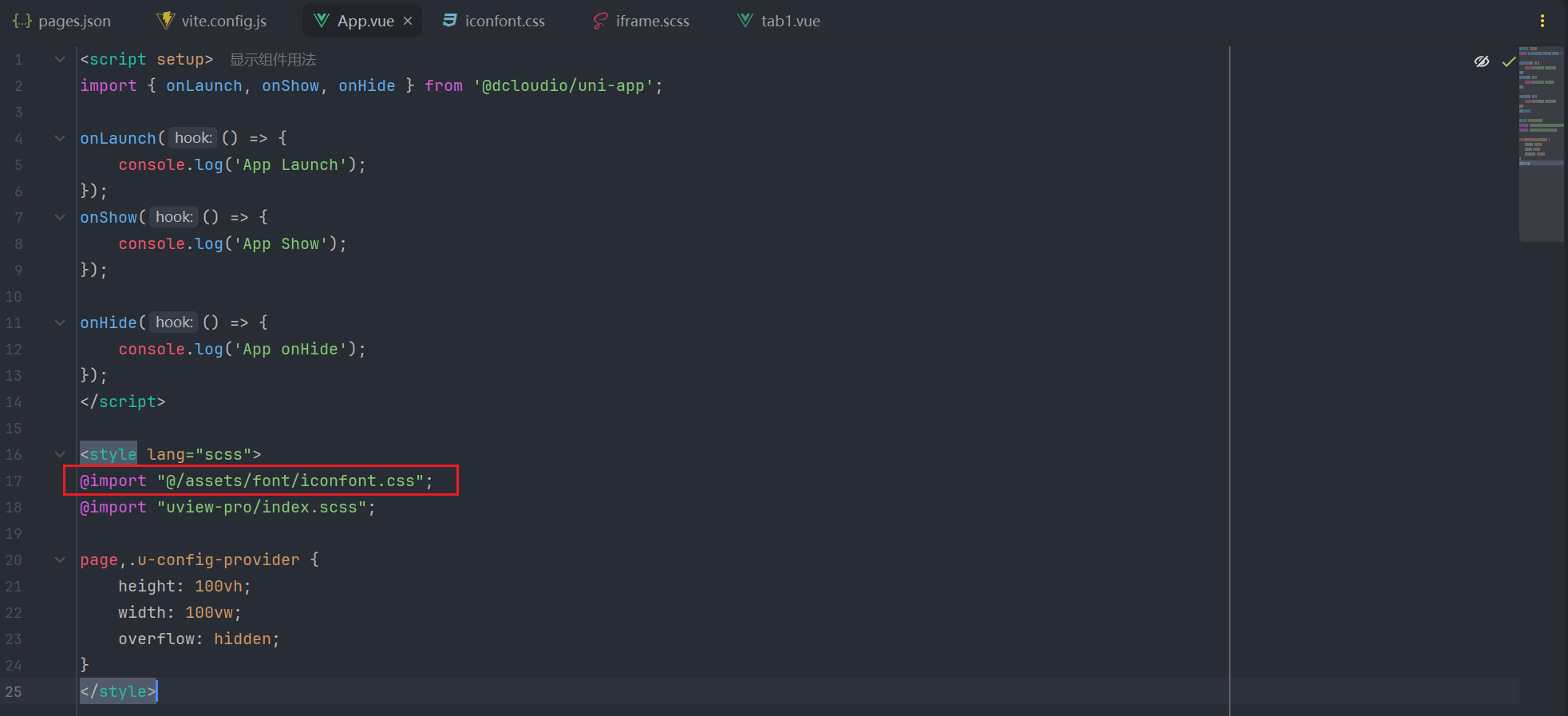 4.修改vite.config.js,将iframe.scss文件引入到项目中