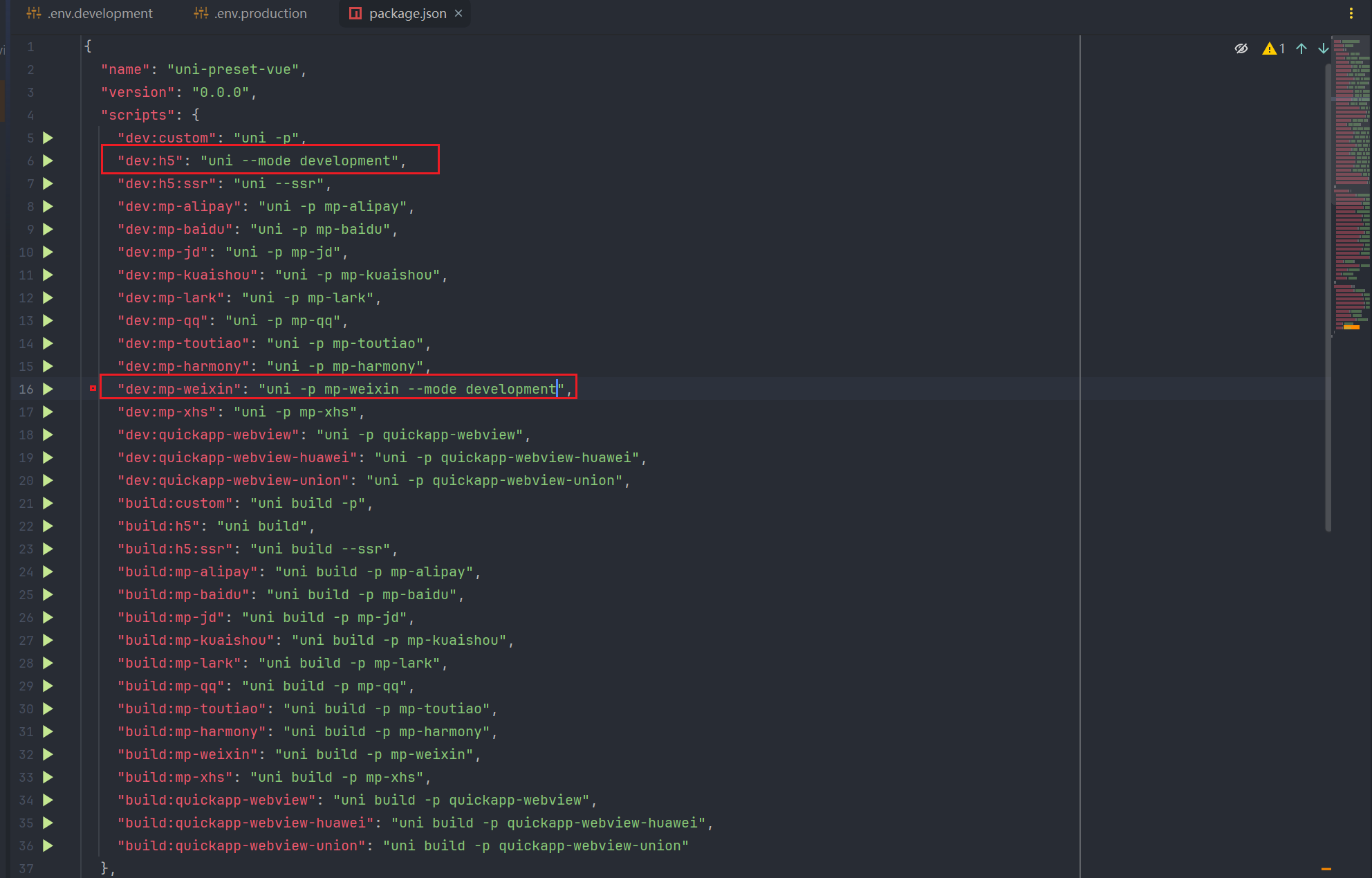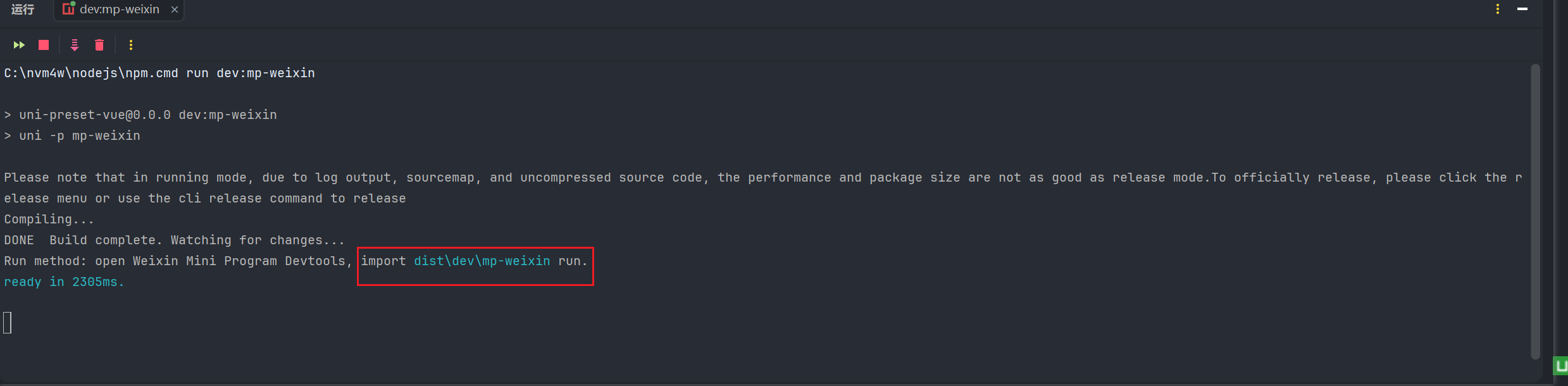 8.微信小程序配置:打开package.json,运行dev:mp-weixin命令,dist\dev\mp-weixin为已经打包好的项目