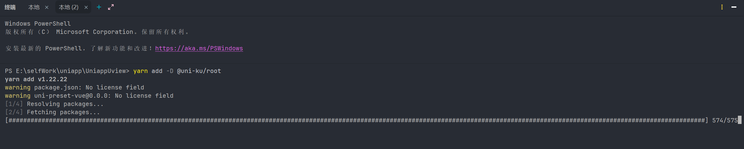 1.运行 yarn add -D @uni-ku/root 安装虚拟根组件
