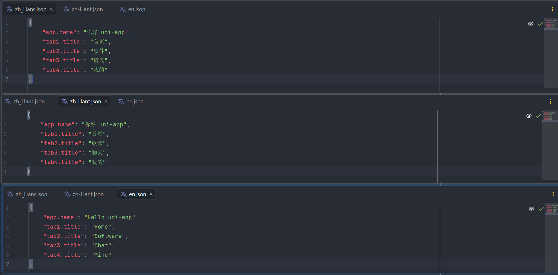 4.pages.json、manifest.json国际化:修改page.json中index页面的title,这个东西有点儿鸡肋,小程序中某些配置是无法生效的,例如:页面导航的tile,配置完还需要动态设置title,否则不会生效,最好的办法就是自定义个Page组件来适配