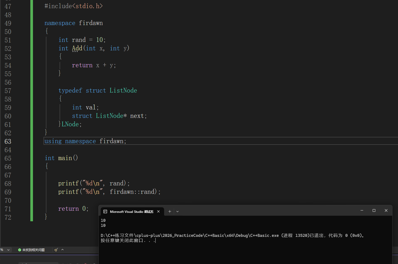 为了解决命名冲突的问题,我们的祖师爷本贾尼博士就引入了namespace关键字,我们以后在定义变量时就定义namespace命名空间里面。