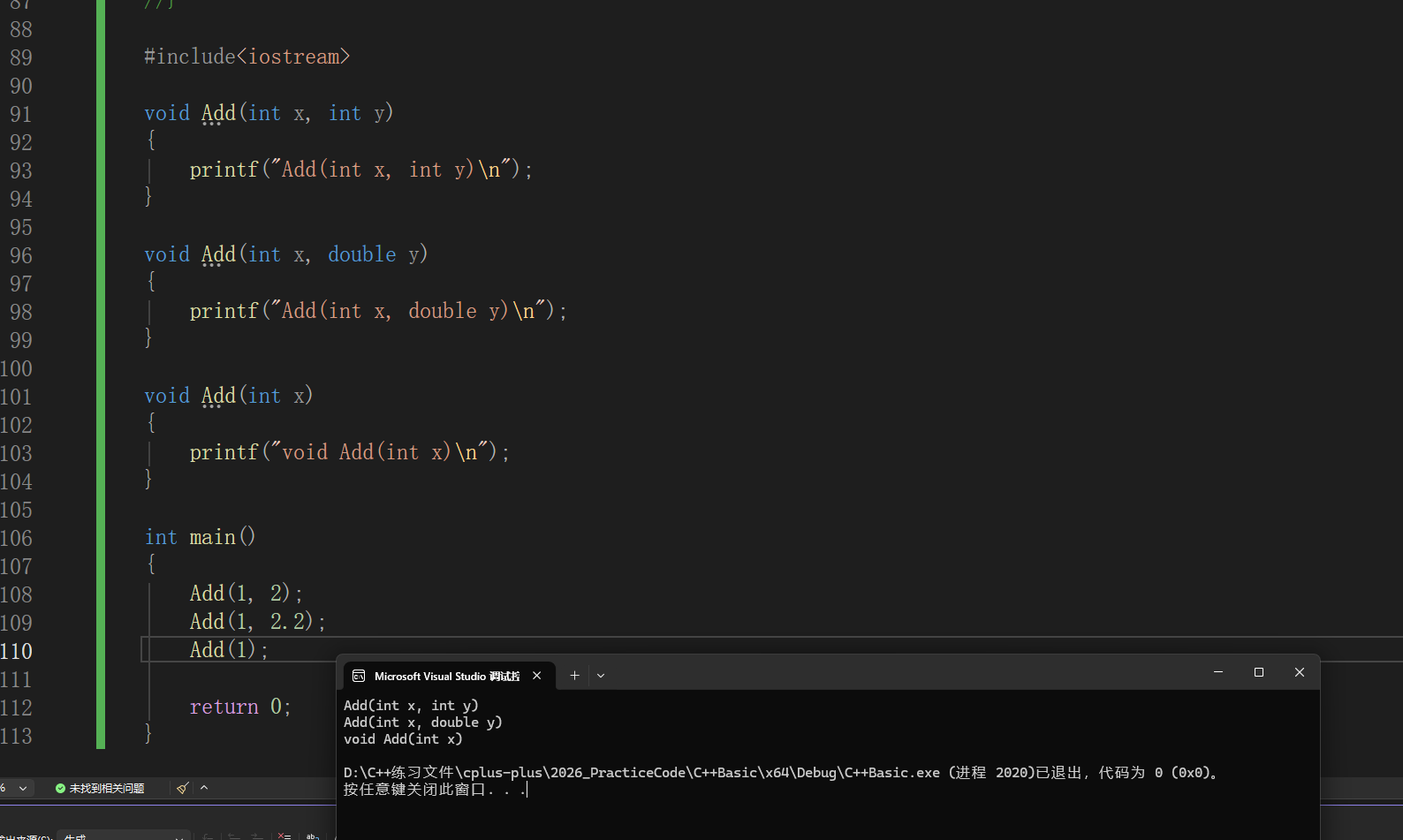 C++⽀持在同⼀作⽤域中出现同名函数,但是要求这些同名函数的形参不同,可以是参数个数不同或者