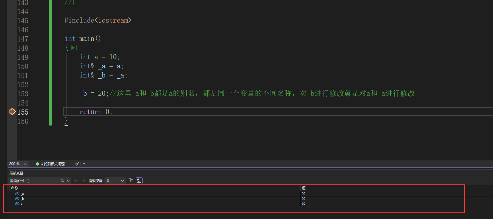 - 引用不是新定义⼀个变量,⽽是给已存在变量取了⼀个别名,编译器不会为引⽤变量开辟内存空间,它和它引⽤的变量共⽤同⼀块内存空间。