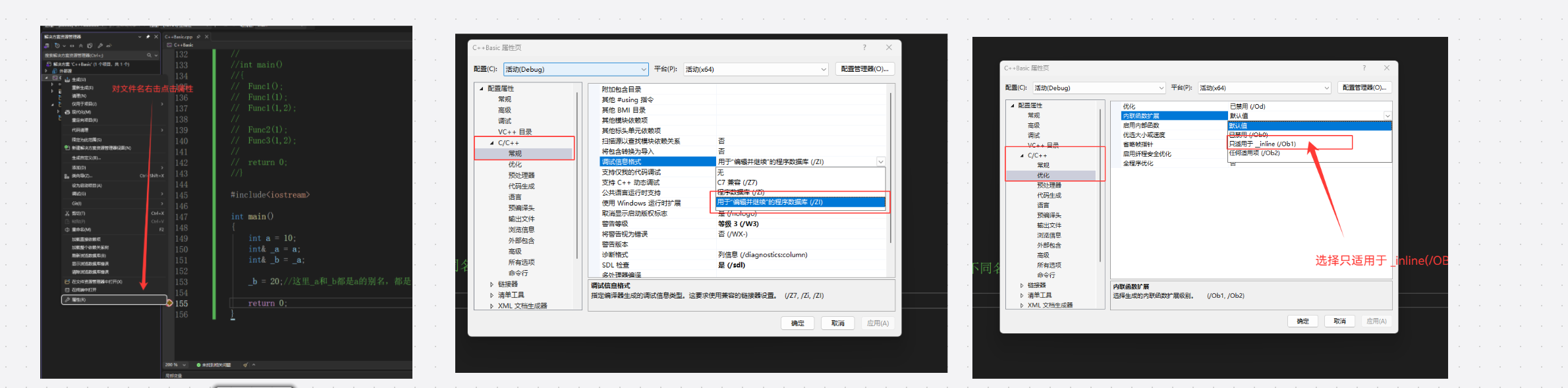 vs编译器 debug版本下⾯默认是不展开inline的,这样⽅便调试,debug版本想展开需要设置⼀下
