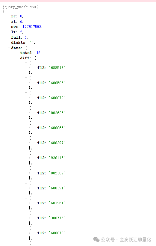 这一步是数据来源核心,我们调用东方财富的公开接口,传入「分类编码」,即可获取该分类下的所有成分标的数据。接口是经过验证的稳定接口,返回数据格式统一,无需频繁调整解析逻辑。