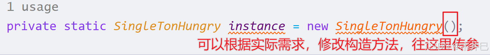 饿汉模式指在类中直接定义全局的静态对象的实例并初始化,然后提供一个方法(getInstance方法)获取该实例对象。通过饿汉模式构造单例模式的代码如下: