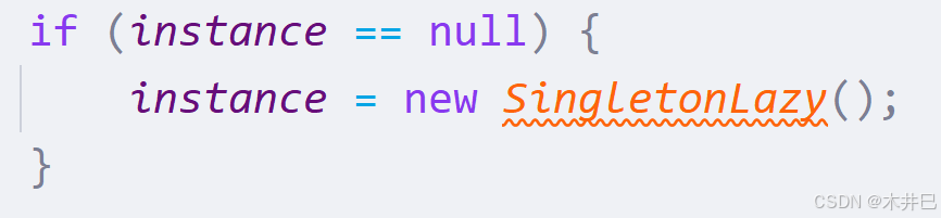 get方法中的 "if条件判断语句" 和 "new创建实例语句" 这两条语句必须要是原子性的才不会出现bug,否则会出现问题: