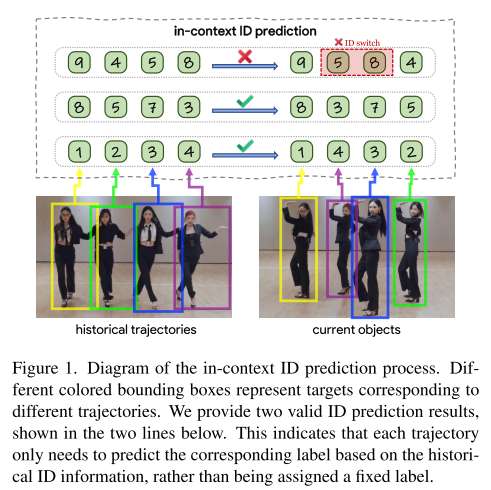 将MOT重新表述为一种 in-context 的 ID 预测问题,并构建一个端到端可训练的框架 MOTIP