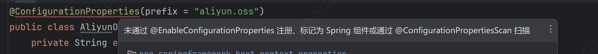 在工具类properties中有波浪线,原因如下,因此在新建的AliyunOssAutoconfigure类中添加以下注解