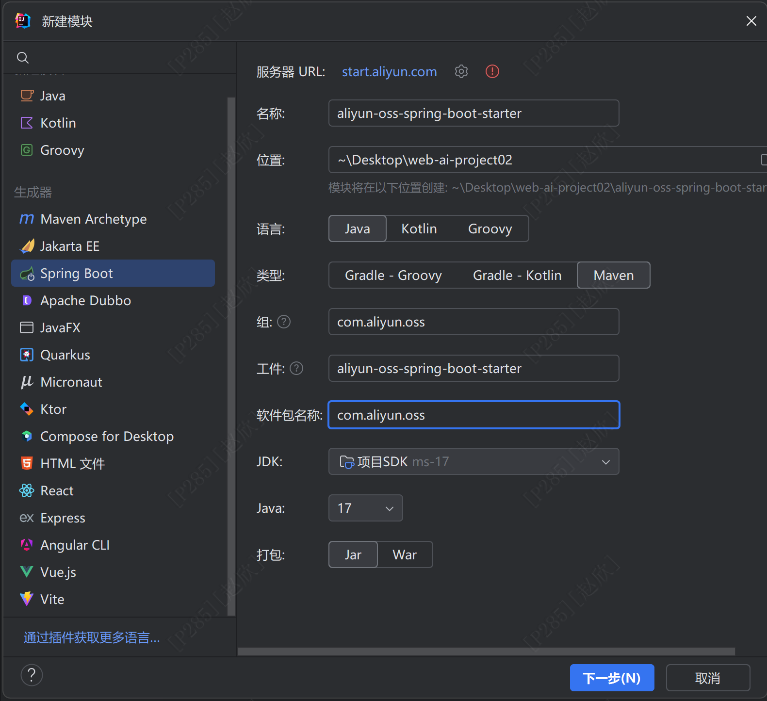 右键项目名称------新建模块,配置如下:
