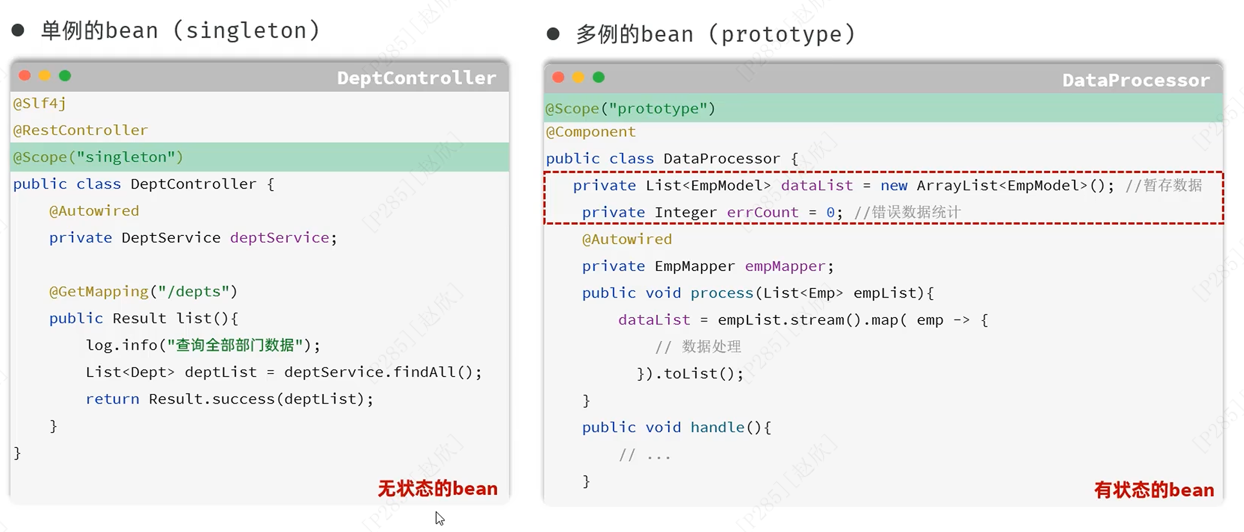 判断这个bean是有状态还是无状态取决原因:是否保存数据,如果保存数据就是有状态的bean,反之亦然。