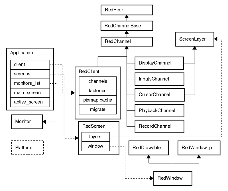 VDI采用了依赖倒置原则:SPICE定义接口,宿主应用(如QEMU)提供实现。这带来了几个好处: