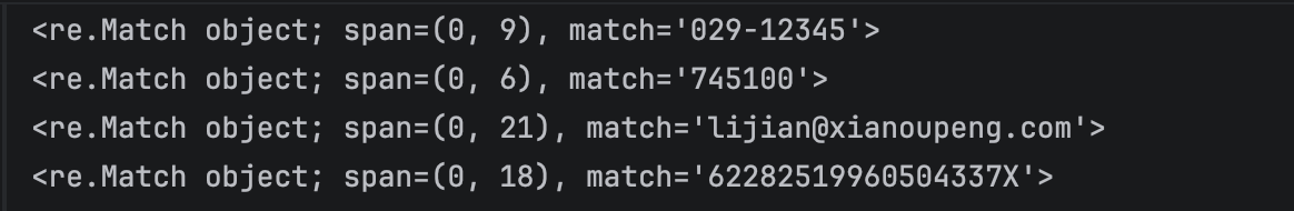 print(re.match(email, 'lijian@xianoupeng.com'))