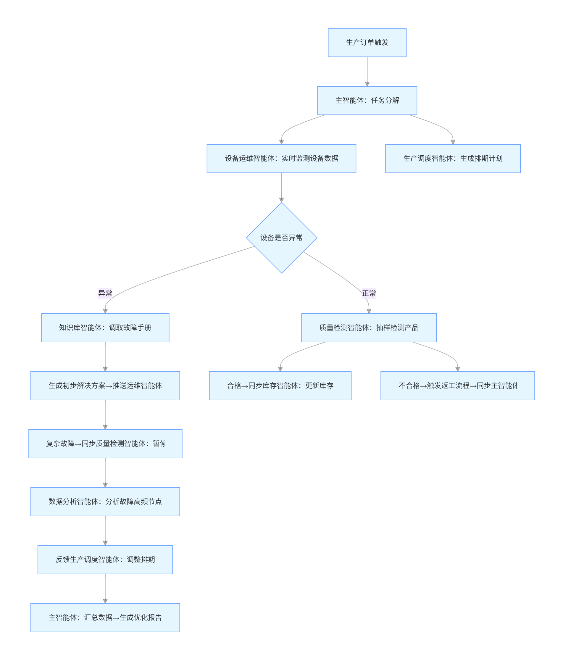 分享一套制造业通用的多智能体联动流程图(基于 30 + 工厂落地案例提炼):