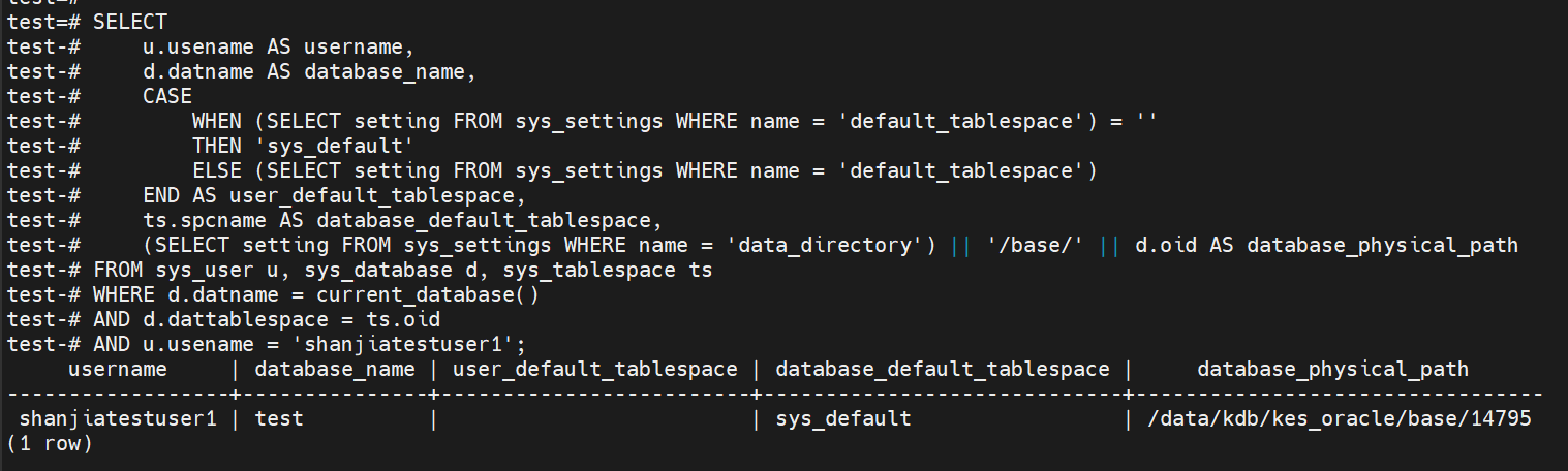 该查询将同时呈现用户关联的数据库、数据库的默认表空间及其物理存储路径,从而提供从用户到物理文件的完整映射视图。