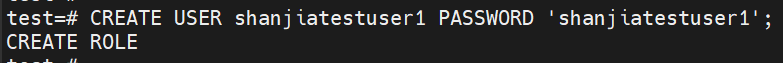 CREATE USER shanjiatestuser1 PASSWORD 'shanjiatestuser1';