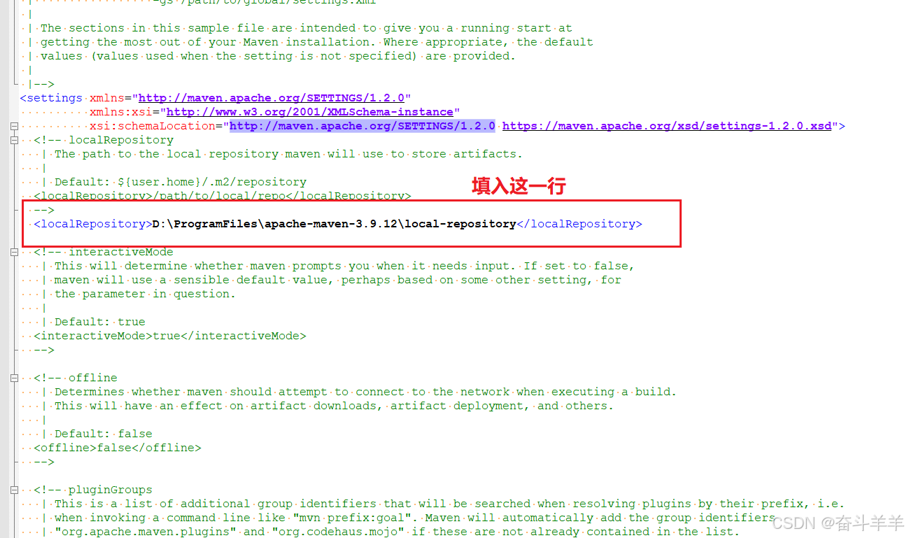 在 apache-maven-3.9.8 下找到conf文件夹,打开,找到settings.xml文件,找到 localRepository 节点,在注释外添加: