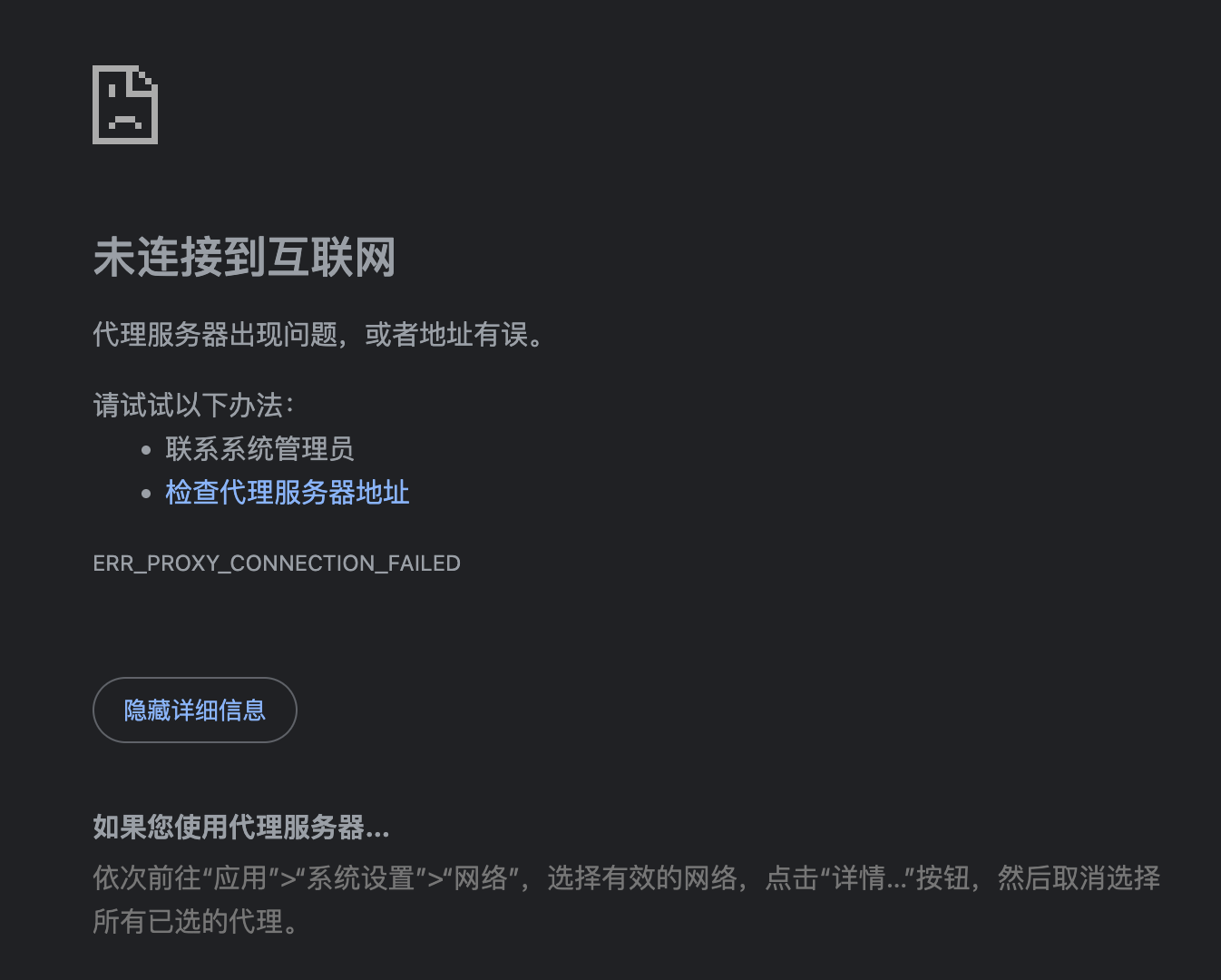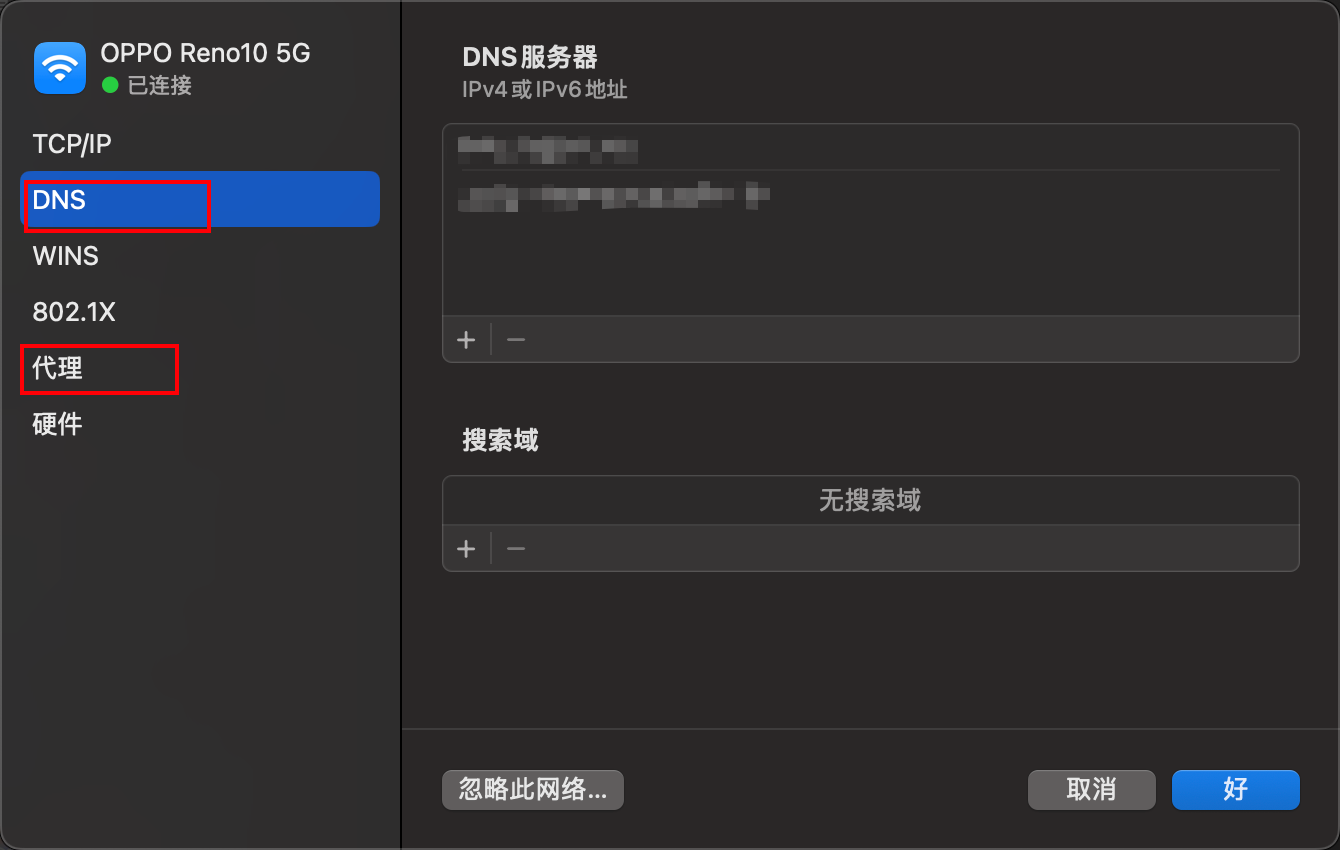解决方法:打开Wi-Fi设置,选择Wi-Fi-详细信息---关闭所有的代理,删除 DNS 中的地址。保存。测试普通浏览器可用。打开 clash x 开启代理模式,测试 google 浏览器是否可用。结果可用。